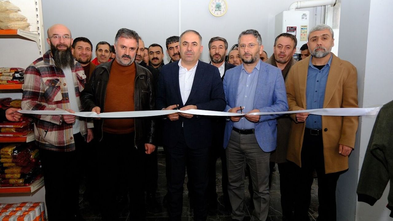Elibüyük, yapılan duanın ardından sosyal marketin açılış kurdelesini kesti.