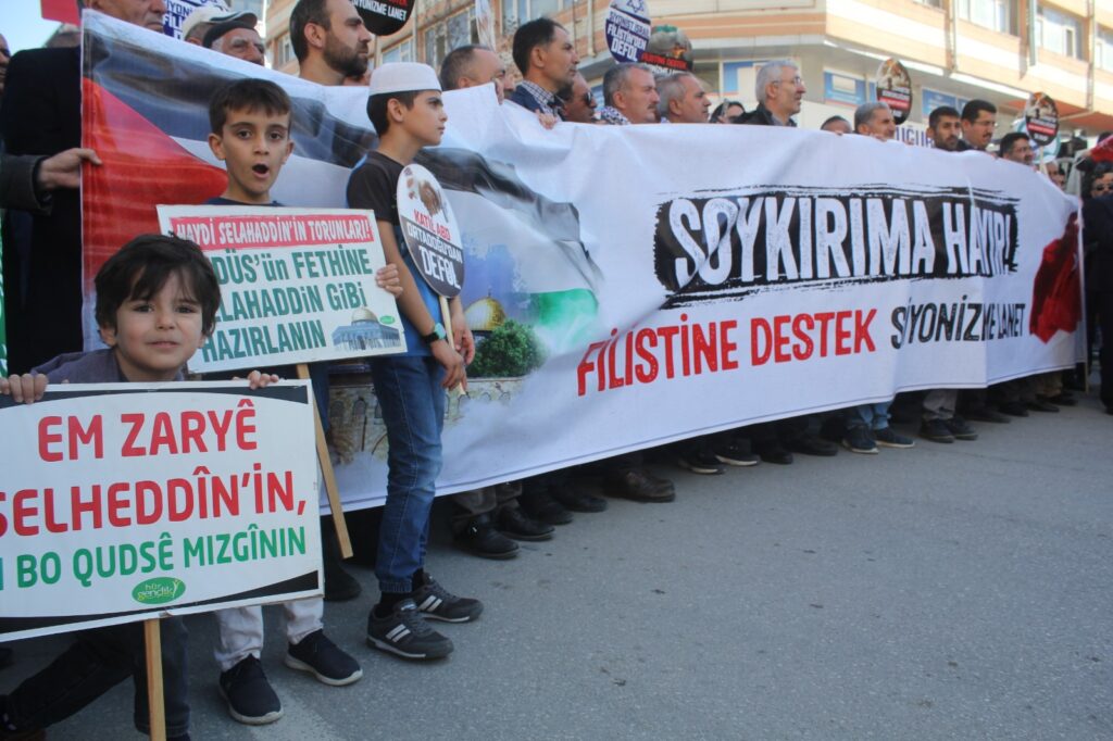 Siyonist işgal çetesi İsrail’in, Filistin’de yaptığı zulmü ve soykırımı lanetlemek amacıyla Van SDİ tarafından miting düzenlendi