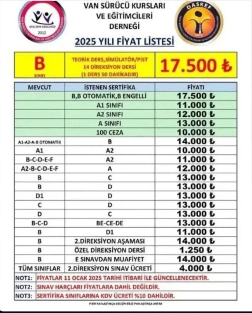 2025 yılı zamlarla geldi. Asgari ücrete yapılan zamdan sonra birçok kaleme zam gelmeye başladı. Artan maliyetleri gerekçe gösteren sürücü kursları da 2025 yılı ücret listesini yayınladı.