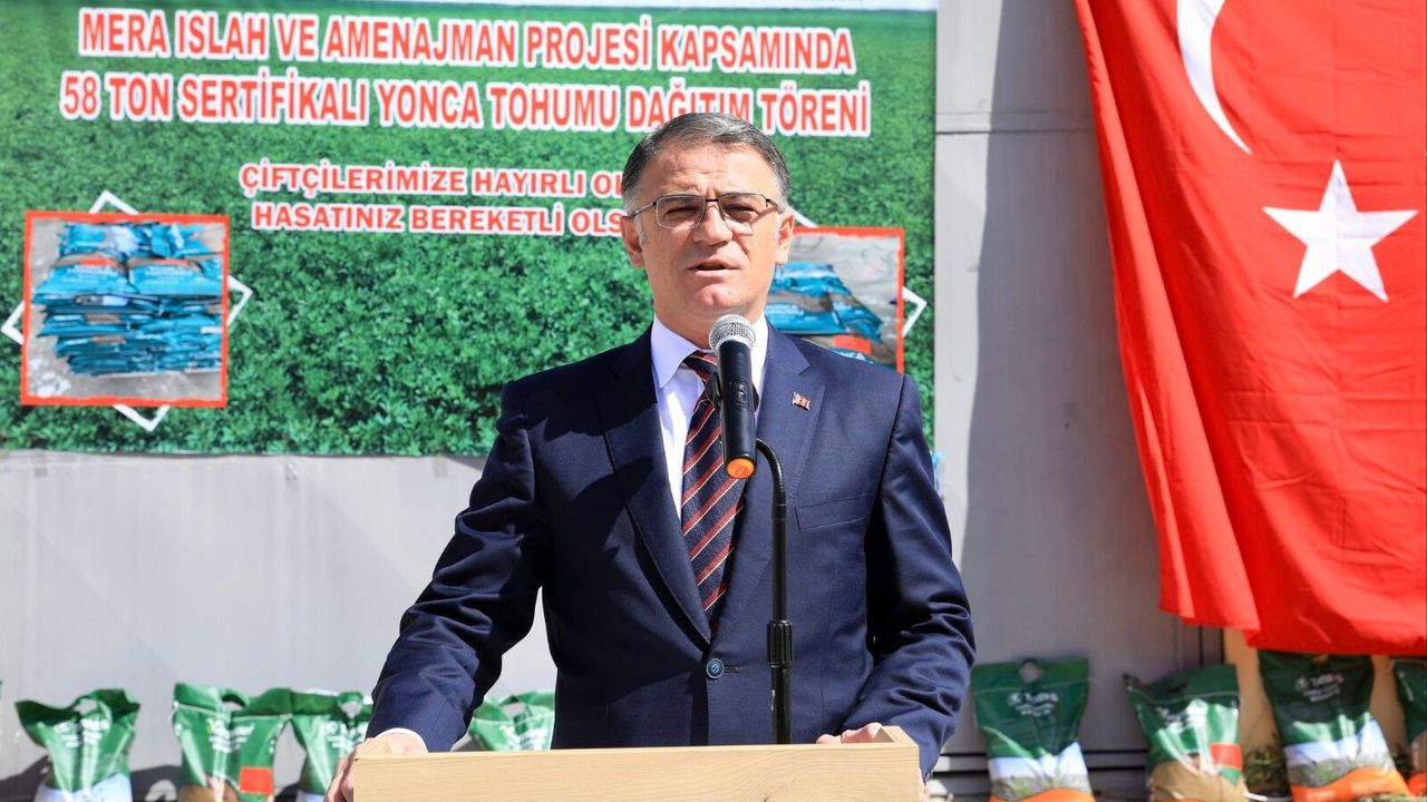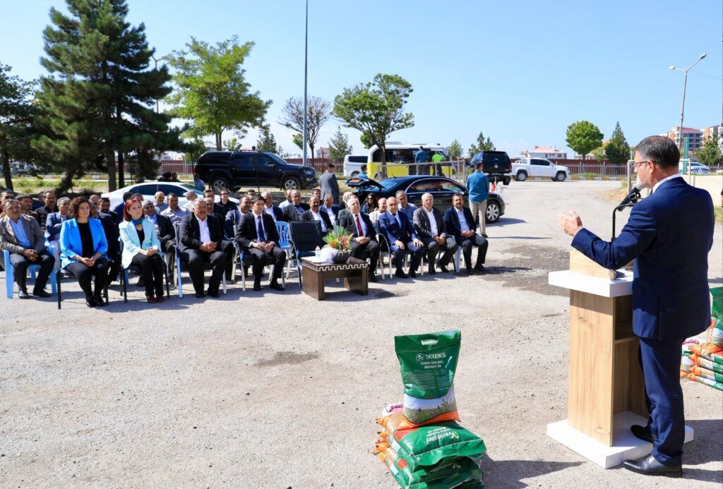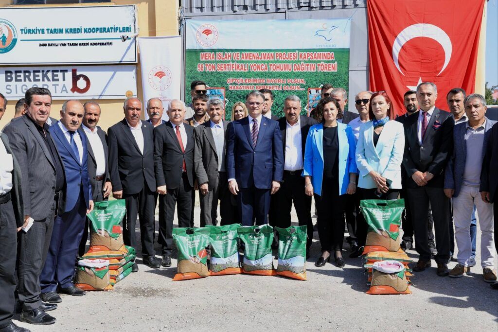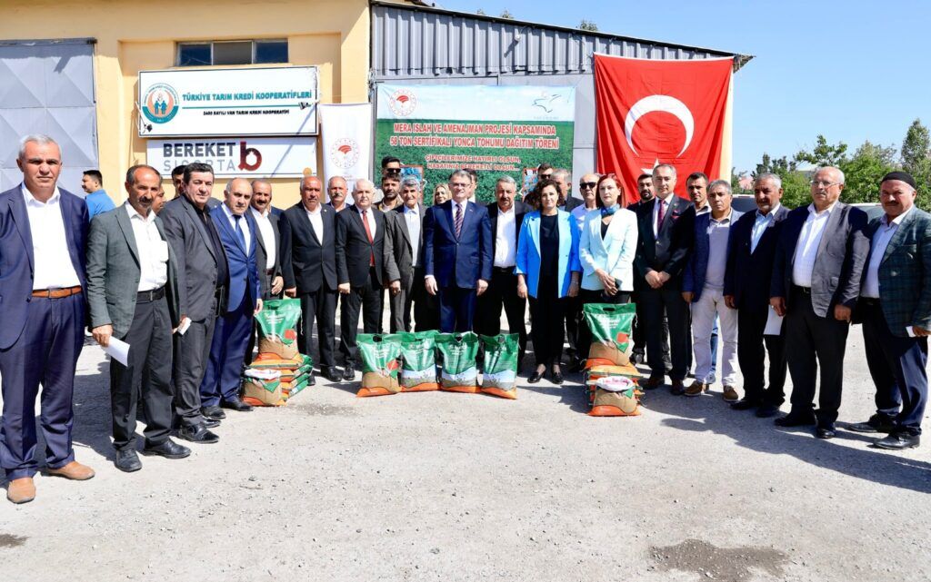 Van Valisi ve Büyükşehir Belediye Başkan Vekili Ozan Balcı, Mera Islahı ve Amenajman Projesi kapsamında çiftçilere 58 ton tohumluk yonca dağıtım törenine katıldı.