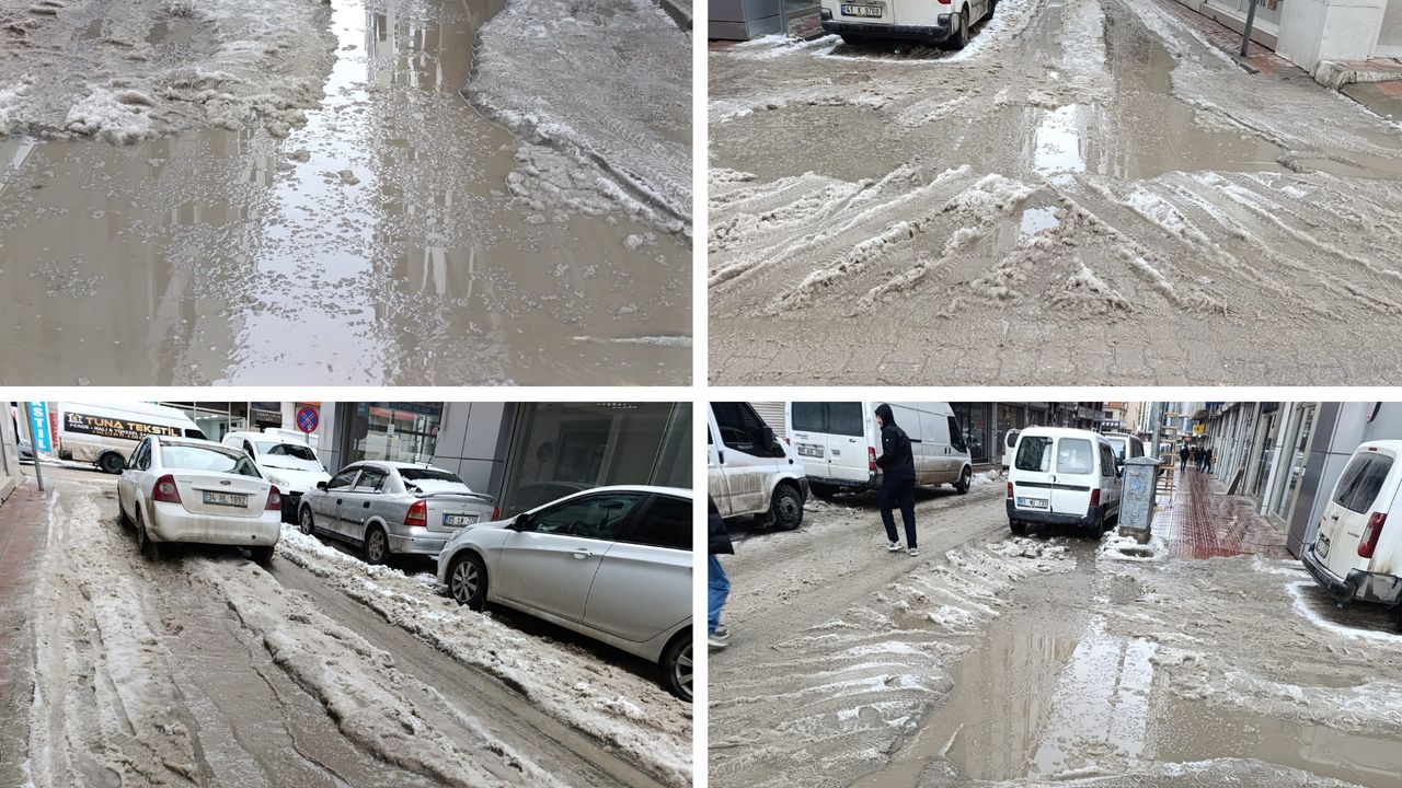 Erimeyen karların oluşturduğu su birikintileri ve buzlanma, özellikle yaya ulaşımını zorlaştırırken, esnaf ve vatandaşların tepkisine neden oldu.