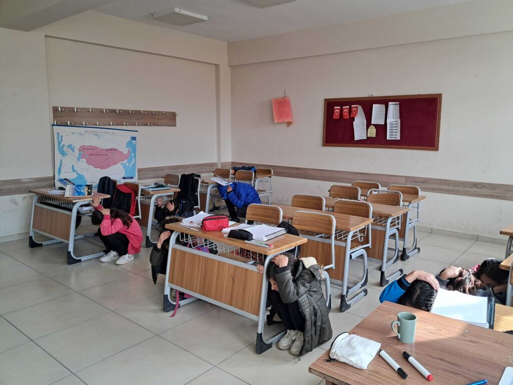 Tatbikatların ardından öğrencilere, Millî Eğitim Bakanı Yusuf Tekin’in mesajını da içeren “Afet ve Acil Durum Kartı” dağıtıldı. Kartta, ailelerin evlerinde afet çantası hazırlamaları, toplanma alanı belirlemeleri ve “tehlike avı” çalışmaları yapmaları teşvik edildi.