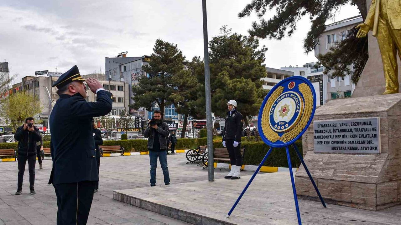 Van Valiliğinin bahçesinde bulunan Atatürk Anıtı’na İl Emniyet Müdürü Murat Mutlu tarafından çelenginin bırakılmasıyla başlayan kutlama töreni, saygı duruşu ve İstiklal Marşı’nın okunmasıyla devam etti. Van Valiliği bahçesindeki törenin ardından İl Emniyet Müdürlüğü’ne geçen Müdür Mutlu, burada tebrikleri kabul etti.
