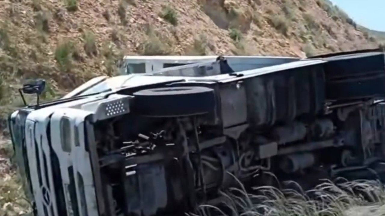 Van’ın Başkale ilçesinde virajı alamayan tır devrildi.