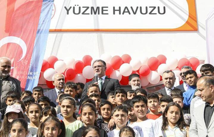 Van Valisi Ozan Balcı Havuzda yüzen çocukları izlerken, spor salonundaki gençlerle de sohbet etti.