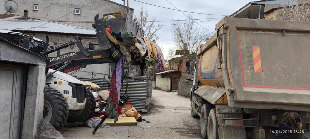 Sosyal Hizmetler Müdürlüğünün Tuşba Belediyesine gelen şikâyeti iletmesi üzerine harekete geçen belediyenin Çevre Koruma ve Kontrol Müdürlüğü ekipleri, çöple doldurulmuş olan evi temizledi.