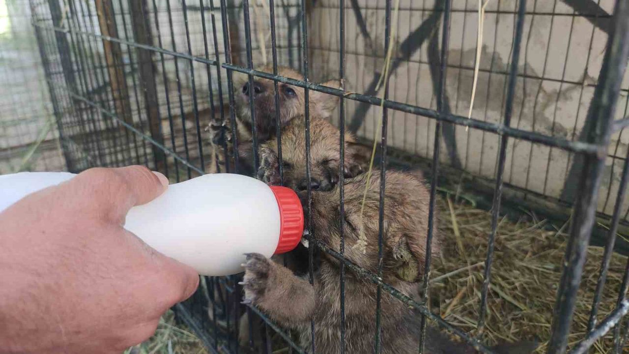 Hakkari’de bitkin halde bulunan yavru kurtlar, getirildikleri Van’da, görevliler tarafından kreş hizmeti verilerek biberonla besleniyor.