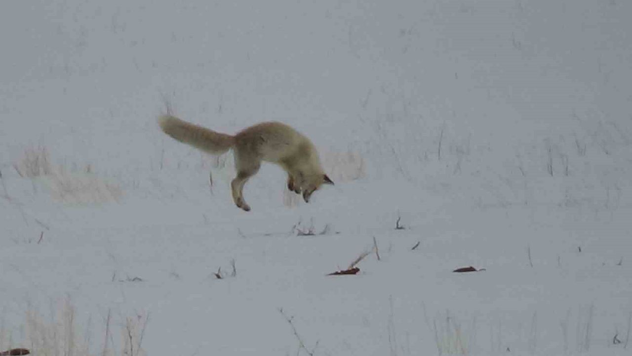 Van’ın yüksek kesimlerinde zorlu kış şartlarında aç kalan kızıl tilkilerin karlı arazideki fare avı saniye saniye görüntülendi.