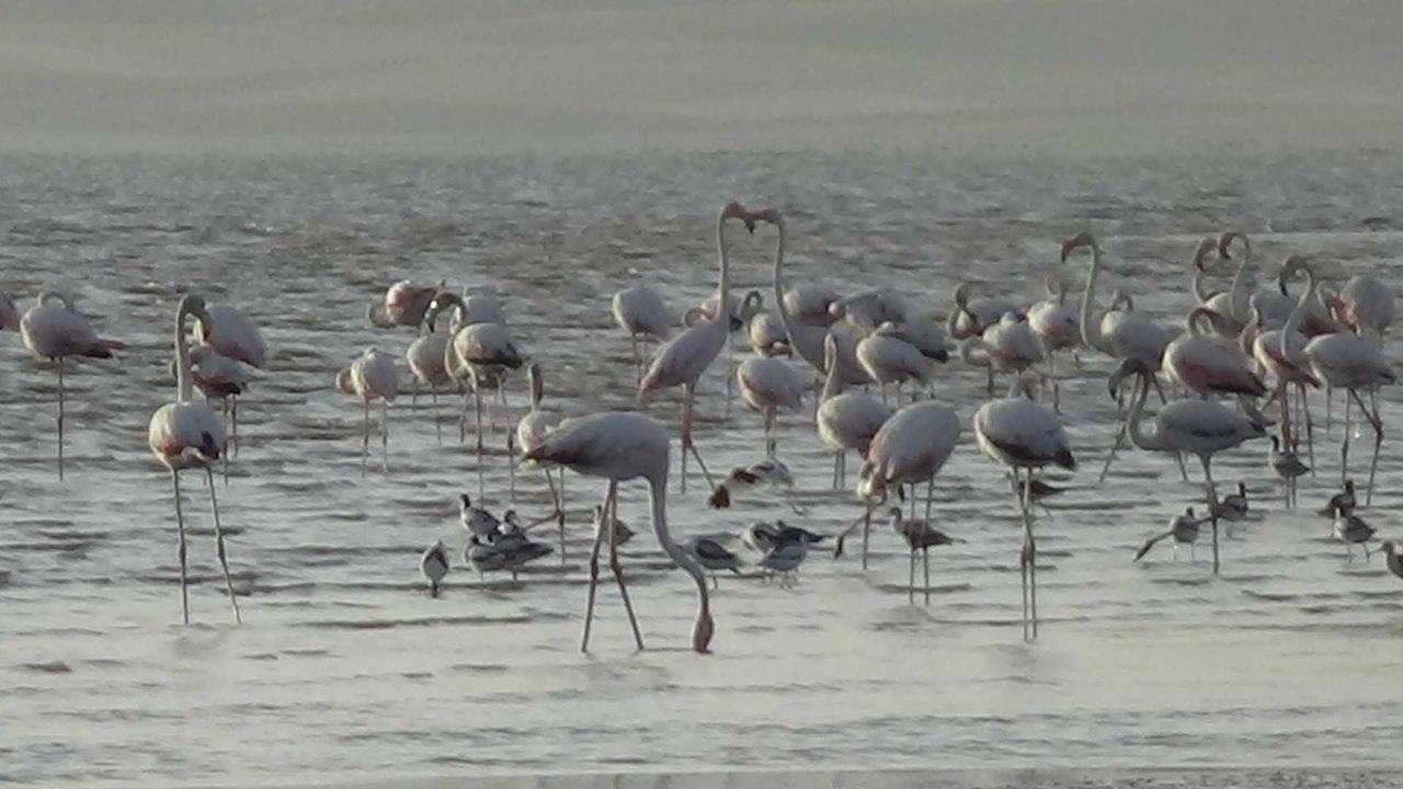 Van Gölü havzasının narin misafirleri flamingolar, yaz mevsimiyle birlikte Erçek Gölü'nde yeniden boy göstermeye başladı. Gölün sığ ve tuzlu sularını tercih eden bu zarif kuşlar, sabahın erken saatlerinden itibaren sürüler halinde göl yüzeyinde süzülerek adeta görsel bir şölen sunuyor. Göç rotaları üzerindeki önemli duraklardan biri olan Erçek Gölü, bu yıl da yüzlerce flamingoya ev sahipliği yapıyor. Pembe ve beyaz tüyleriyle dikkat çeken flamingoların gölde beslenmesi, uçuşu ve bir arada oluşturduğu manzaralar, hem doğaseverlerin hem de fotoğraf tutkunlarının ilgisini çekiyor. Sessizliği ve doğal yapısıyla kuşlar için huzurlu bir ortam sunan Erçek Gölü, flamingoların hem dinlenme hem de beslenme alanı olarak dikkat çekiyor. Suyun içinde süzülen zarif siluetleri ve pembe tonlardaki tüyleriyle flamingolar, göl manzarasına ayrı bir renk katıyor. Fotoğrafçılar ve doğa tutkunları, bu görsel şöleni kaçırmamak için bölgeyi sıkça ziyaret ederken, uzmanlar flamingoların korunması ve yaşam alanlarının bozulmaması gerektiğini vurguluyor. Erçek Gölü, bu zarif kuşlar sayesinde Van'ın en etkileyici doğa sahnelerinden birine ev sahipliği yapıyor.