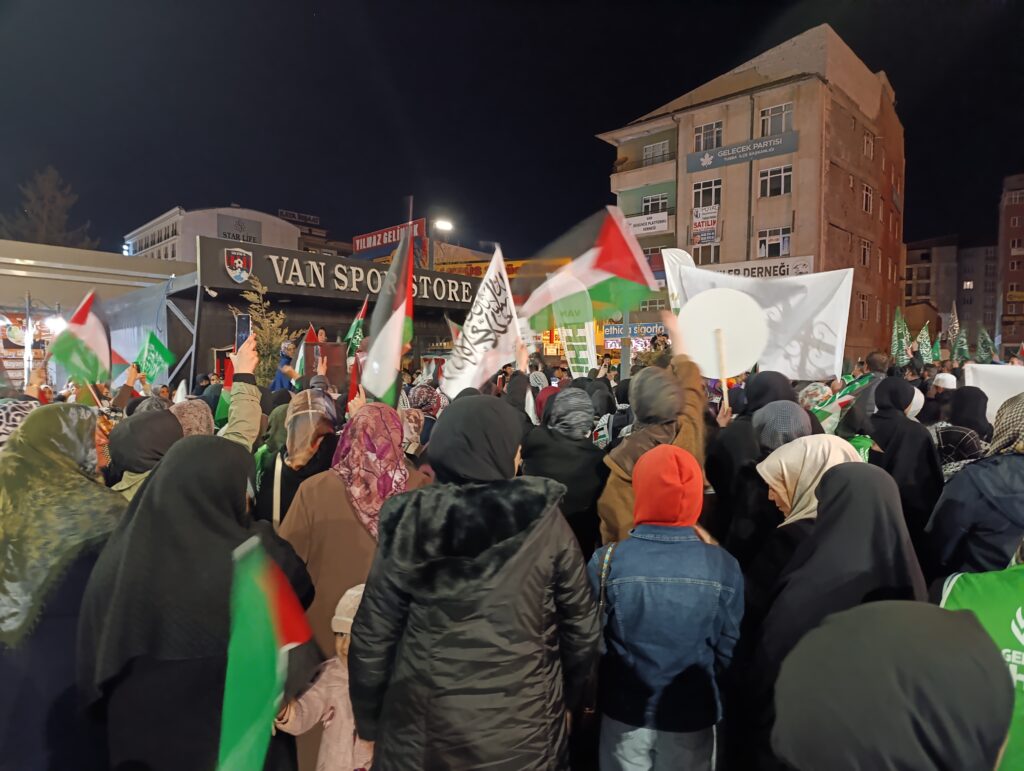 Etkinlik kapsamında yüzlerce kişi saat 22.00’de Beşyol Meydanı’nda bir araya gelerek Gazze’deki Müslümanlara destek olmak için tekbirler getirdi, dualar etti.