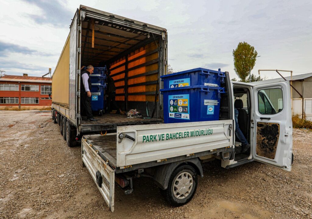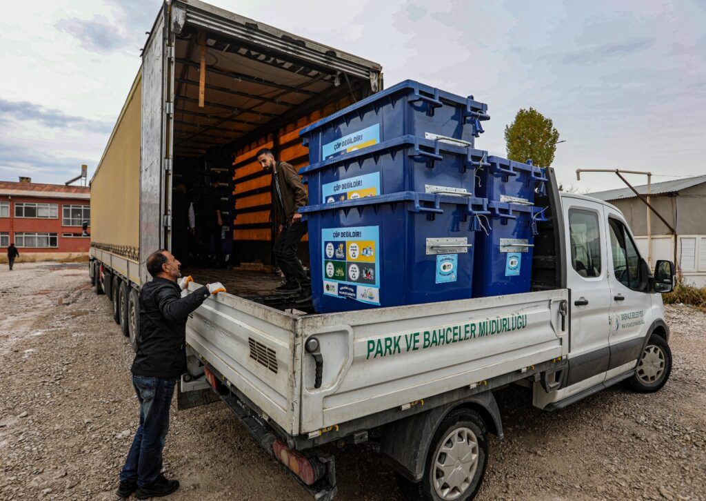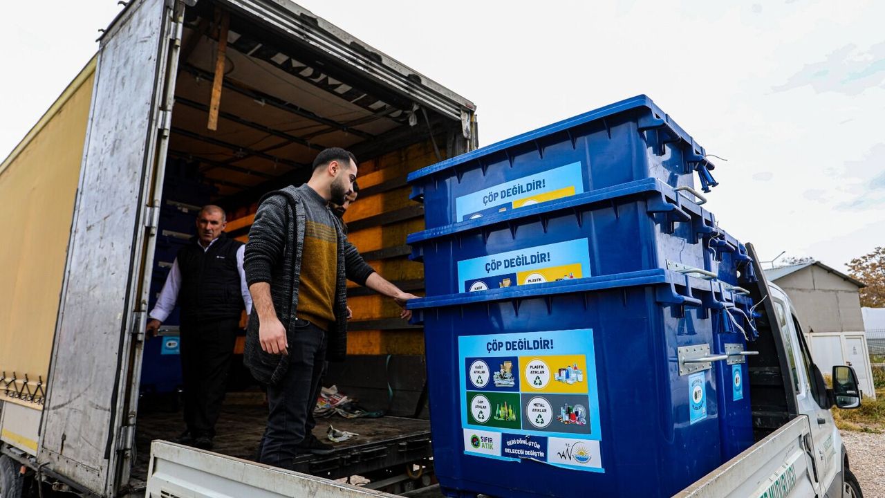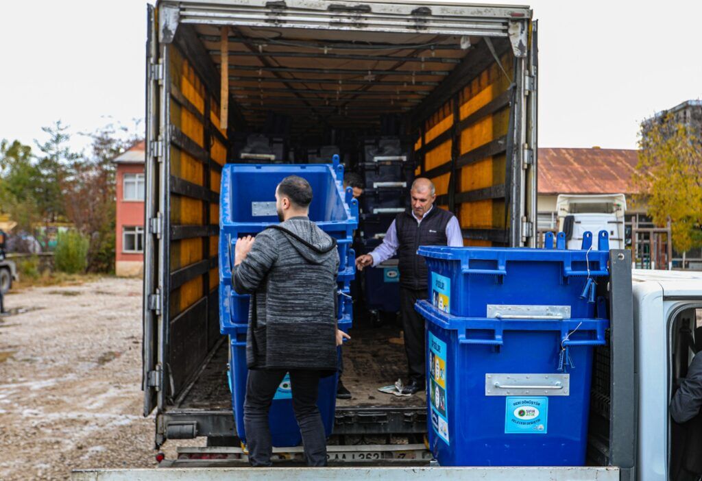 Van Büyükşehir Belediyesi, sıfır atık projesi ve geri dönüşüm çalışmaları kapsamında 13 ilçeye plastik çöp konteyneri dağıttı.
