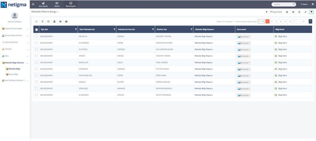 Tüm mahalleler için ayrıntılı bilgi kartları