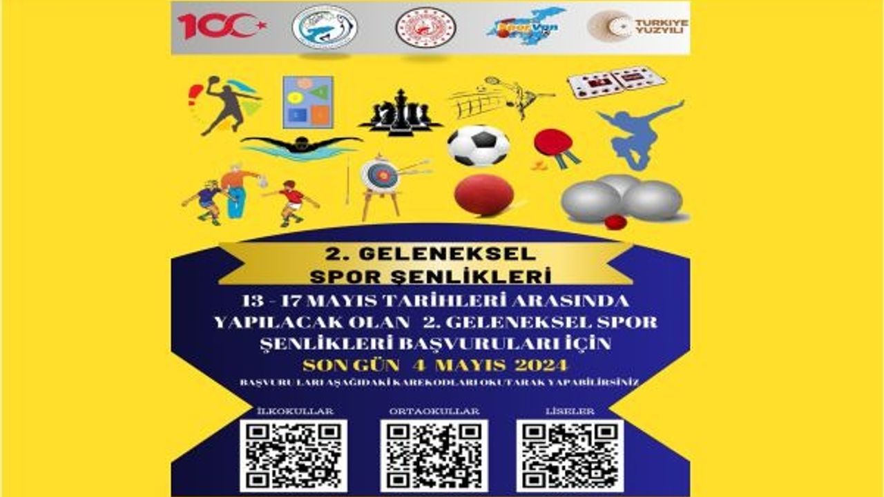 Basketbol, ok atma, satranç, tenis, futbol ve yüzme gibi çeşitli spor dallarında etkinliklerin düzenleneceği şenliklere, Erciş Milli Eğitim Müdürlüğü sosyal medya hesabı üzerinden verilen karekod ile başvurulabilecek.