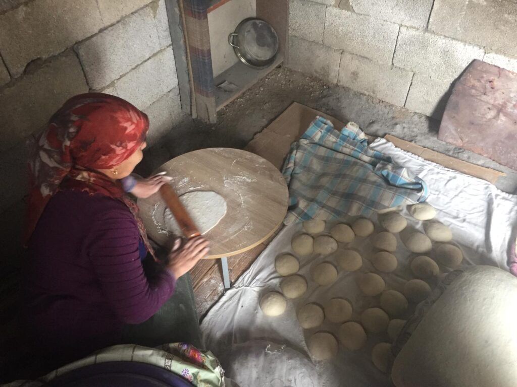 Özellikle kırsal mahallerde pişirilen ekmeğin hamuru sabahın erken saatlerinde yoğruluyor. Buğday unu, su, tuz ve mayanın karışımı ile yoğrulan hamur, 2 saatin sonunda pişirilmeye hazır hale geliyor. Daha çok evin kadınları tarafından pişirilen tandır ekmeği için özel tandır evleri yapılıyor. Evin hemen yanında yapılan tandır evleri, yaz kış kullanılabiliyor.