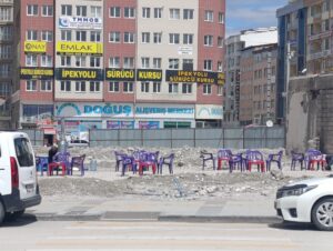 Kentte kullanım ömrünü tamamlayan binaların yıkımı kapsamında, geçmişte Emlak Kredi Bankası ve ardından Ziraat Bankası binası olarak hizmet veren ve Van’ın ilk 6 katlı binası olarak bilinen yapı da yıkılmıştı. Ancak aradan geçen zamana rağmen, binanın yerine herhangi bir inşaat faaliyeti başlatılmadı. Yıkımdan geriye kalan moloz yığınları ise hâlâ alanda duruyor. Üstelik söz konusu alanda bir de seyyar çay tezgahı kurulmuş durumda. Şehrin kalbinde yer alan bu görüntü, hem estetik açıdan rahatsızlık yaratıyor hem de kent kimliğine zarar veriyor.
