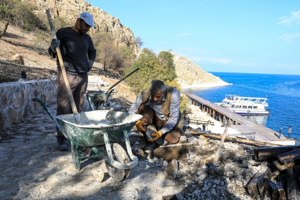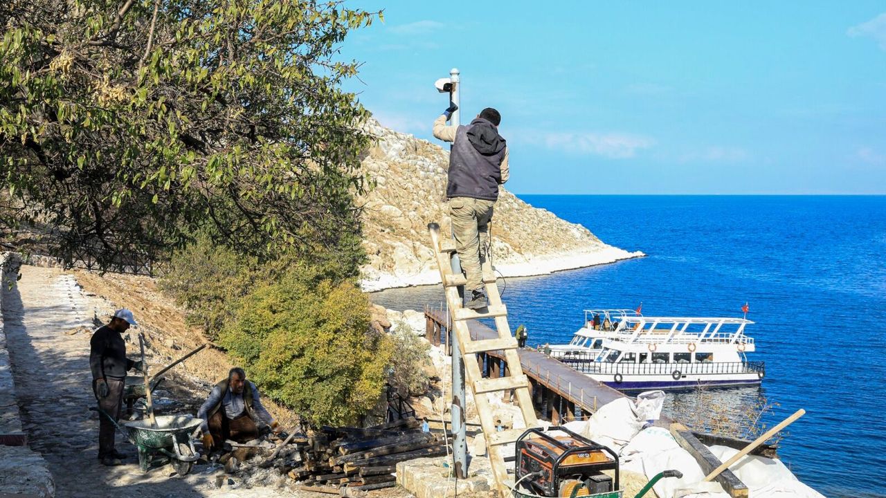 Van’ın Gevaş ilçesinde bulunan ve her gün yerli, yabancı birçok kişi tarafından ziyaret edilen tarihi Akdamar Adası’nda ışıklandırma çalışmaları devam ediyor.