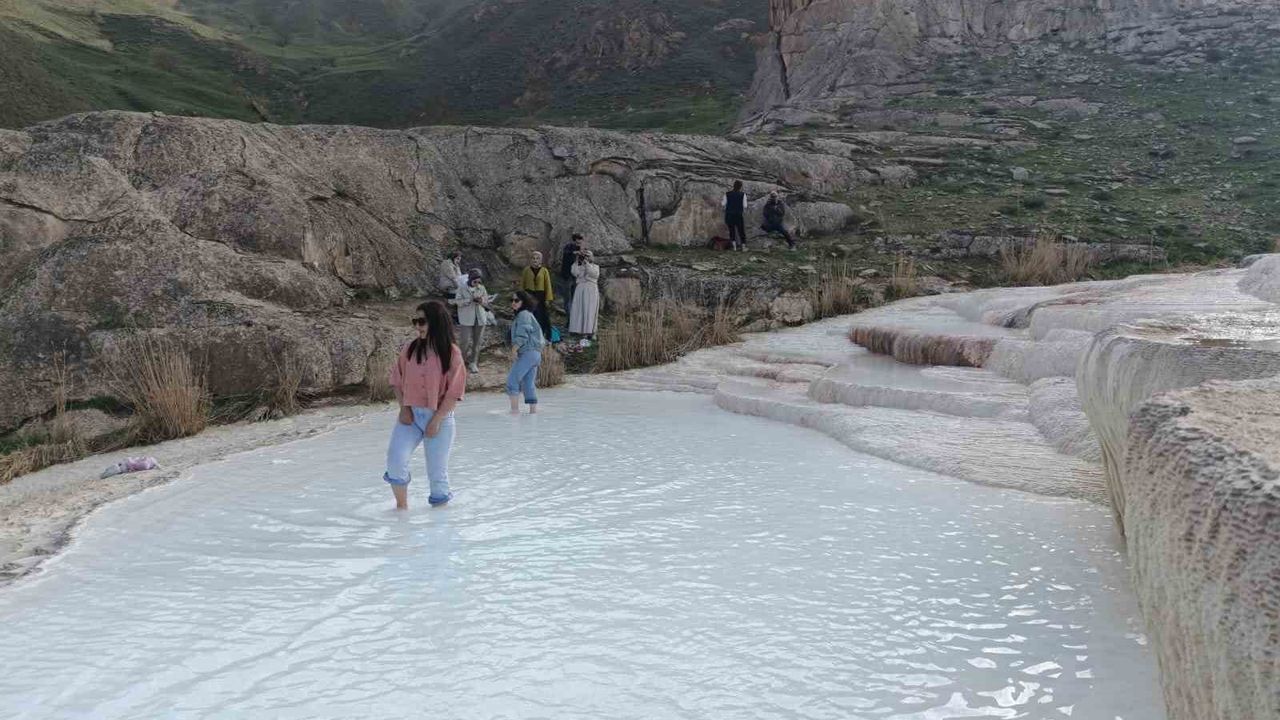 Başkale ilçesinin Dereiçi Mahallesi yakınlarında bulunan ve Pamukkale’yi andıran travertenler, vatandaşların akınına uğruyor. Van’ın Muradiye ve Erciş ilçesinden hareket eden kursiyer öğrenciler, Başkale ilçesindeki travertenleri gezdi. Halk Eğitim Merkezi Müdürlüğü destekli fotoğrafçılık kursu öğrencileri, travertenleri gezerek bol bol fotoğraf çektirdi.
