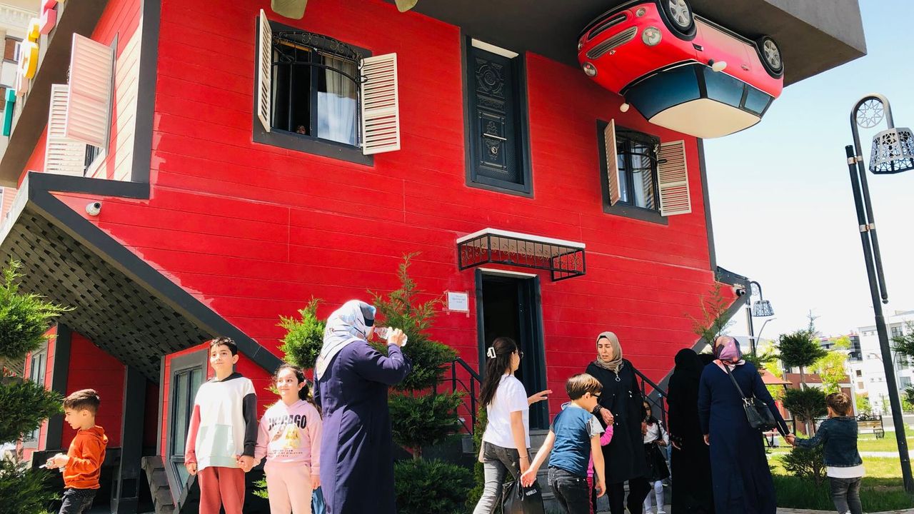İpek Park Eğlence Merkezine gelen anneler, Ters Evi gezerken gönüllerince fotoğraf çektirdi ve eğlencenin keyfini çıkardı.