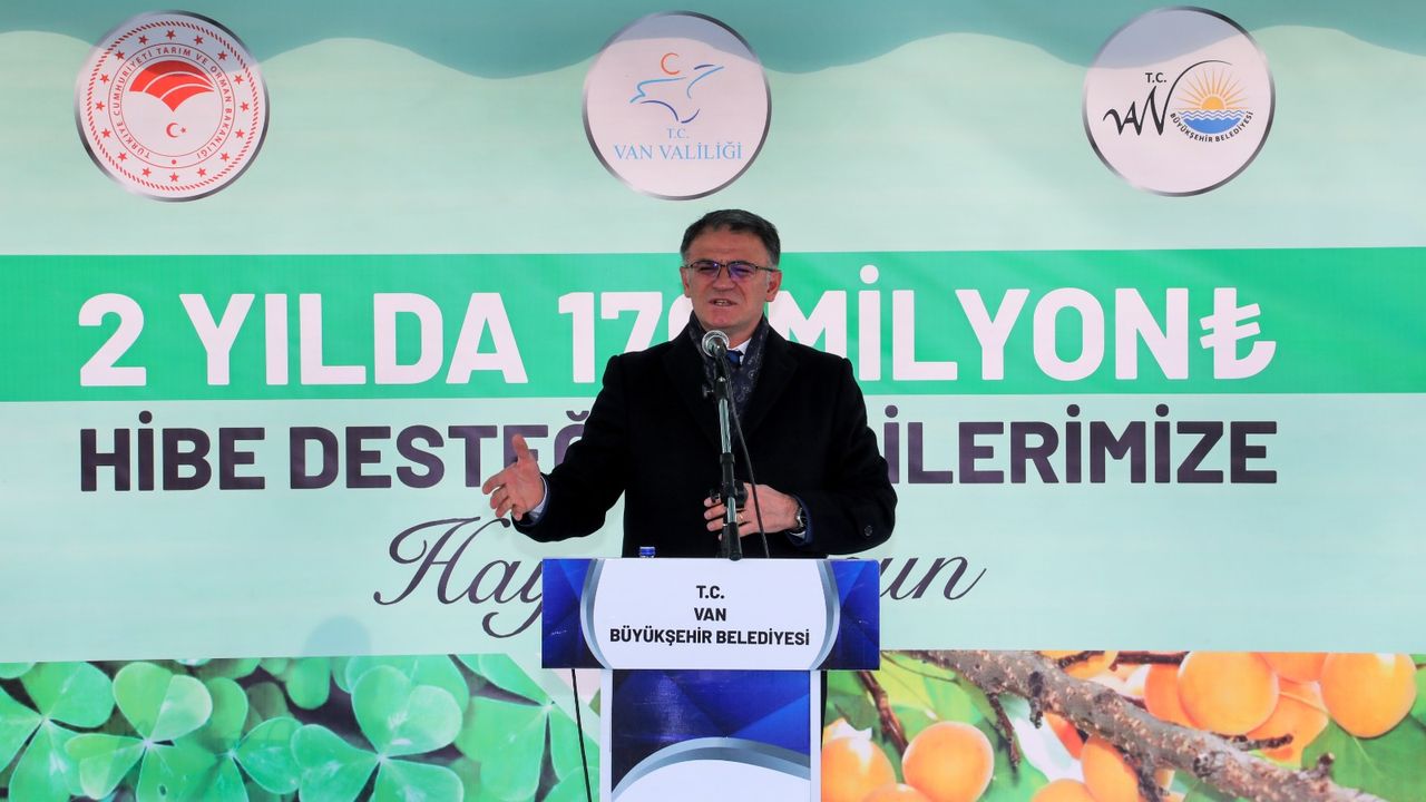 Törende konuşan Vali Ozan Balcı Van ilinin meyvecilik potansiyelini artırmak adına 2 yılda 700 bin meyve fidanı dağıttıklarını söyledi. Çiftçilere ek kazanç elde etmeleri içinde birçok yeni projeyi hayata geçirdiklerini belirten Vali Ozan Balcı “Bugün güzel bir iş için çiftçilerimiz ile bir araya geldik. Memleketi, milleti sevmek sadece sevmekle olmaz. Güzellikleri korumak, imar ve ihya ile olur. Bizlerde çiftçilerimize destek olmak memleketimizi güzelleştirmek için çiftçilerimize 350 bin fidan dağıtacağız. Çiftçilerimizde bu fidanları bağlarına bahçelerine ekerek kentimizin ekonomisine katkı sağlayacaklar. Hem de kentimiz yeşillenecek. Tarımsal alanların sulanması için de birçok ilçemize tarımsal göletler ve kanallar yapıyoruz. Koyun projemizle de bugüne kadar 171 bin 661 koyunu 1727 çiftçimize dağıttık. Hayvanlar su içsin diye de 7 bin sıvat kurup kırsal alanlara güneş enerjili sondajlar kurduk. Yayla yollarını açıyoruz. Bunların hepsi çiftçilerimize destek olmak kentimizde tarımı geliştirmek içindir” dedi.