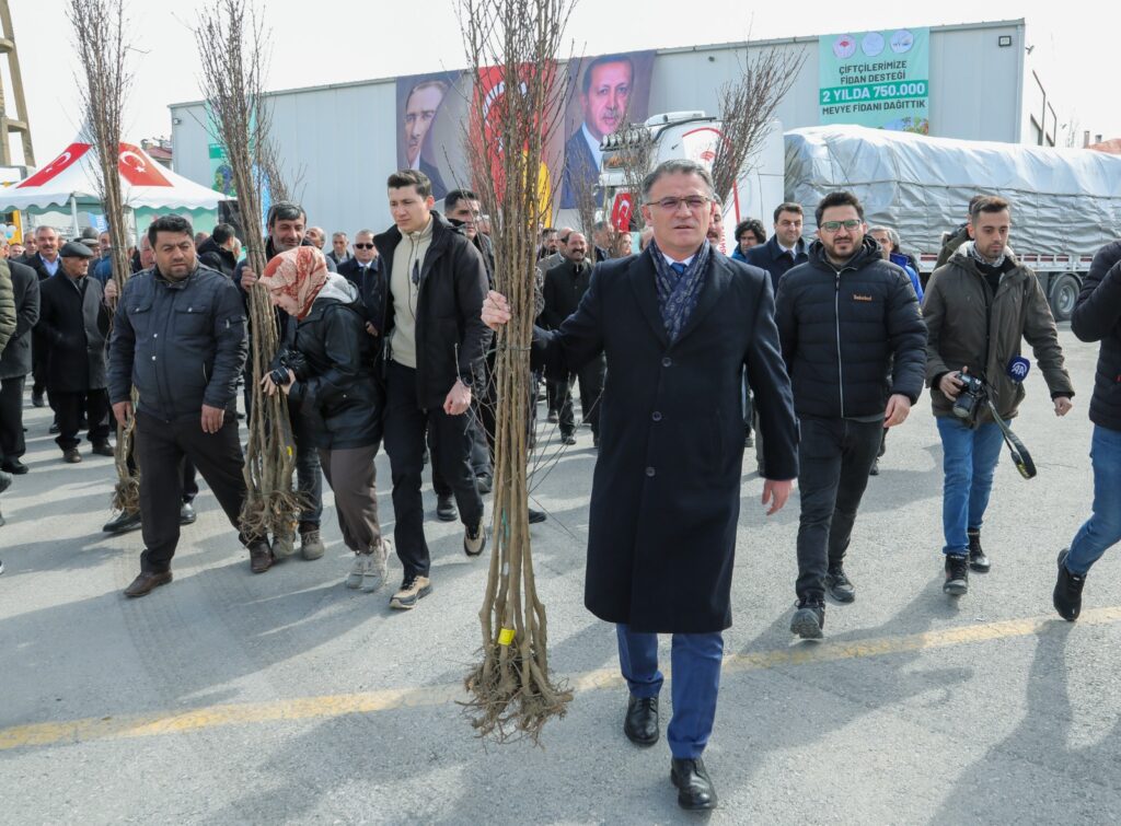 Törenin ardından Vali Ozan Balcı çiftçilere fidan dağıtarak sohbet etti.