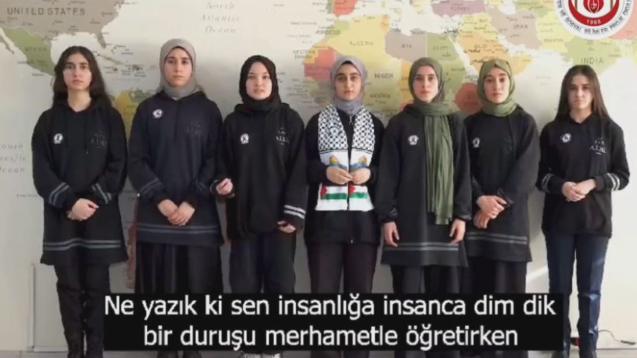“FARSÇA DİLİNDE GAZZE İLE İLGİLİ HAYKIRIŞI DİLE GETİRMEK İSTEDİK” Okulda toplam 90 öğrencinin farsça eğitim aldığının belirtildiği açıklamada, “Geçen sene yapılan Farsça münazara yarışmasında okulumuz birinci oldu. Özellikle farsça dilinde de Gazze ile ilgili haykırışı dile getirmek istedik. Bütün dünyaya Gazze’de yaşanan zulmü haykırmak istedik.” İfadelerini kullandı.