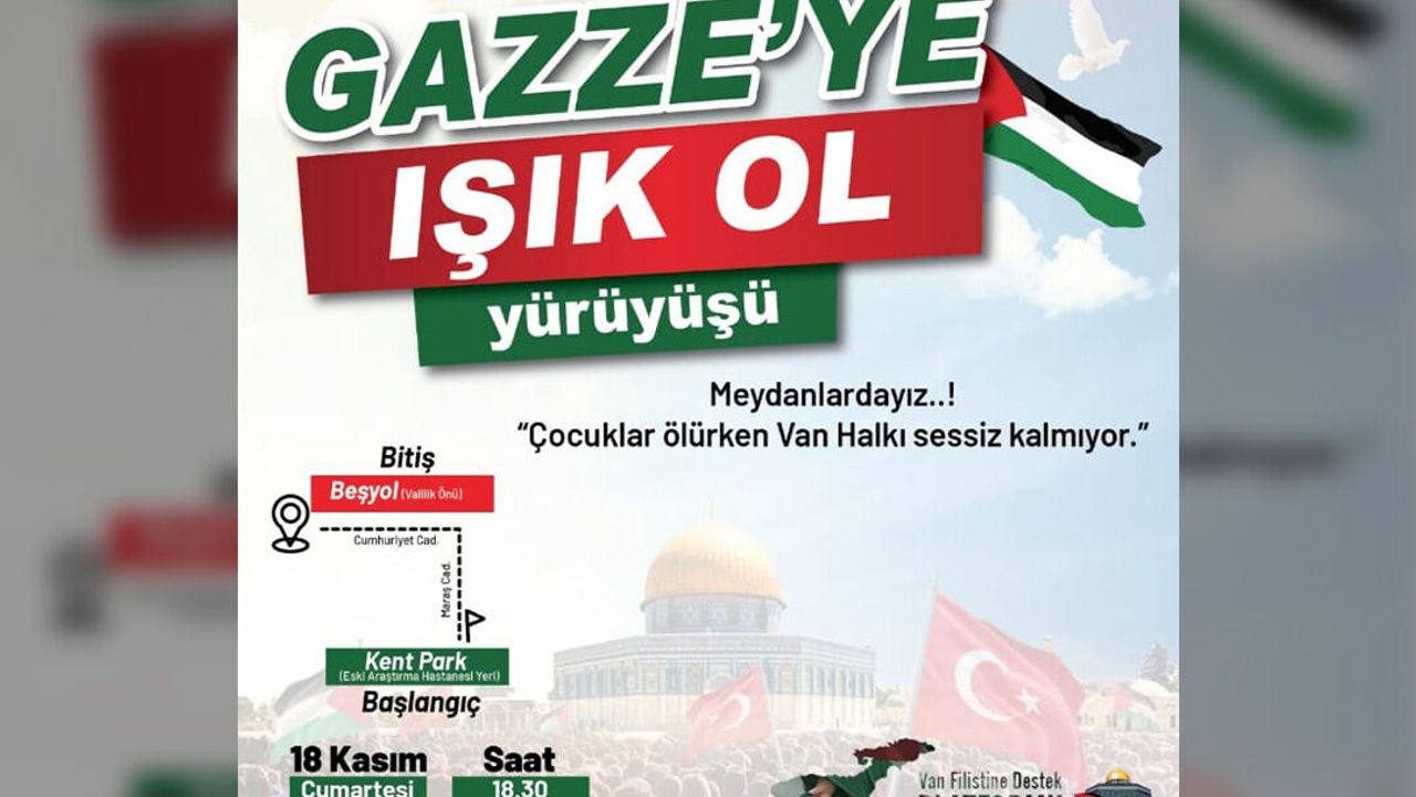 Bütün dünyada olduğu gibi Van’da da Gazze’de uygulanan soykırıma karşı protesto etkinlikleri devam ediyor. Bu kapsamda Van Filistin’e Destek Platformu tarafından “Gazze’ye Işık Ol” sloganıyla yürüyüş düzenlenecek.