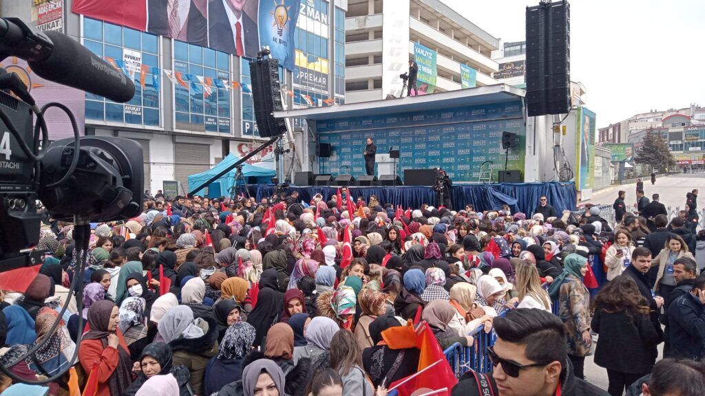 Erdoğan'ın gelişi öncesi güvenlik önlemleri alınırken miting alanı hınca hınç doldu.