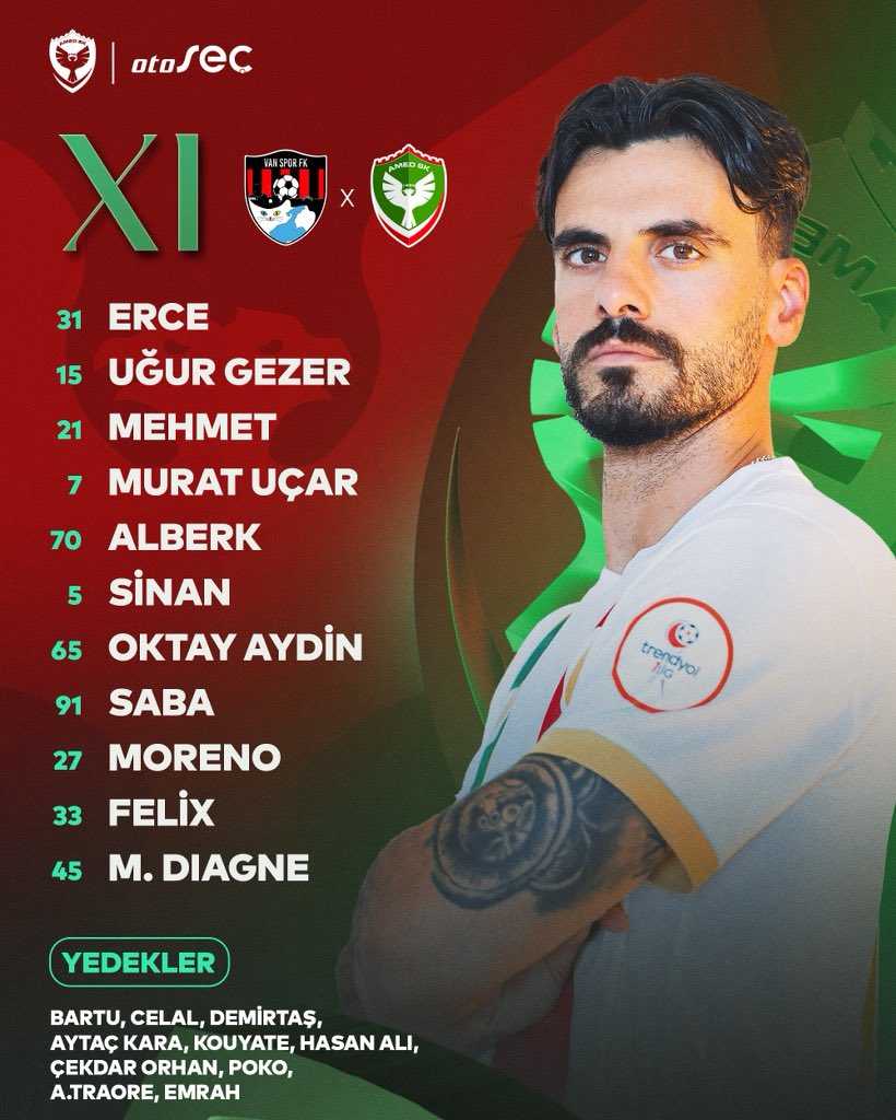 Ev sahibi Vanspor FK ise sahaya şu kadro ile çıkıyor: