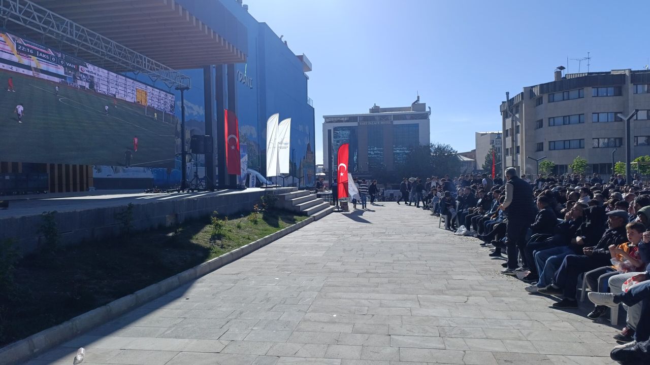 Bugün saat 16.00’da başlayan kritik karşılaşma öncesi, Vanlı futbolseverlerin heyecanı doruğa ulaştı. Vanspor sevdalıları için Cumhuriyet Caddesi yanındaki Kent Meydanı'na dev ekran kuruldu. Taraftarlar, kurulan alana gelerek takımlarını coşkuyla desteklemeye başladı.