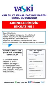 Yapılan duyuruda ayrıca, “Adres güncelleme işlemini yapmak isteyen abonelerin, e –Devletteki ikamet adresleri ile abone adresleri aynı değilse, ilgili belediyeden adres kodu alarak gönderdiğimiz linke girip adres kodu yerini doldurabilirsiniz”açıklaması yapıldı.
