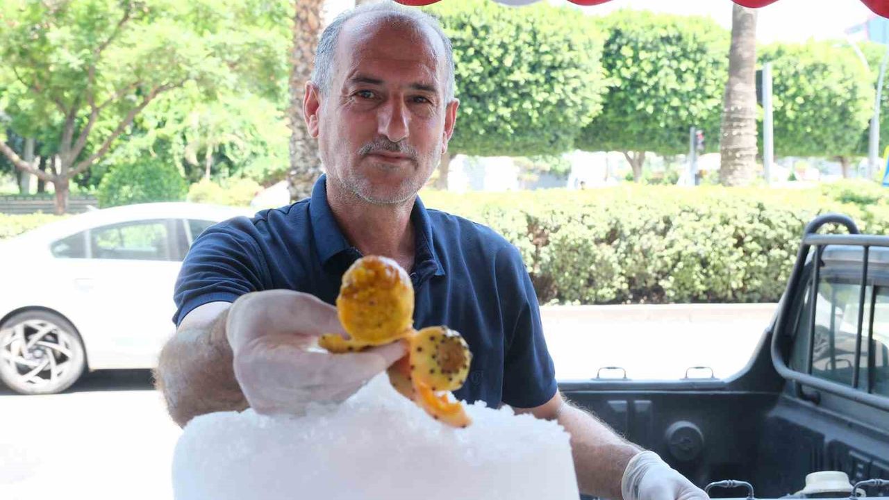 Üzerindeki dikenli kabuk tabakası temizlenerek seyyar tezgahlarda buz kalıpları arasında soğutularak satılan organik dikenli incir, sıcak havanın hakim olduğu kentte serinlemeye çalışan kişilerce büyük bir keyifle tüketiliyor.