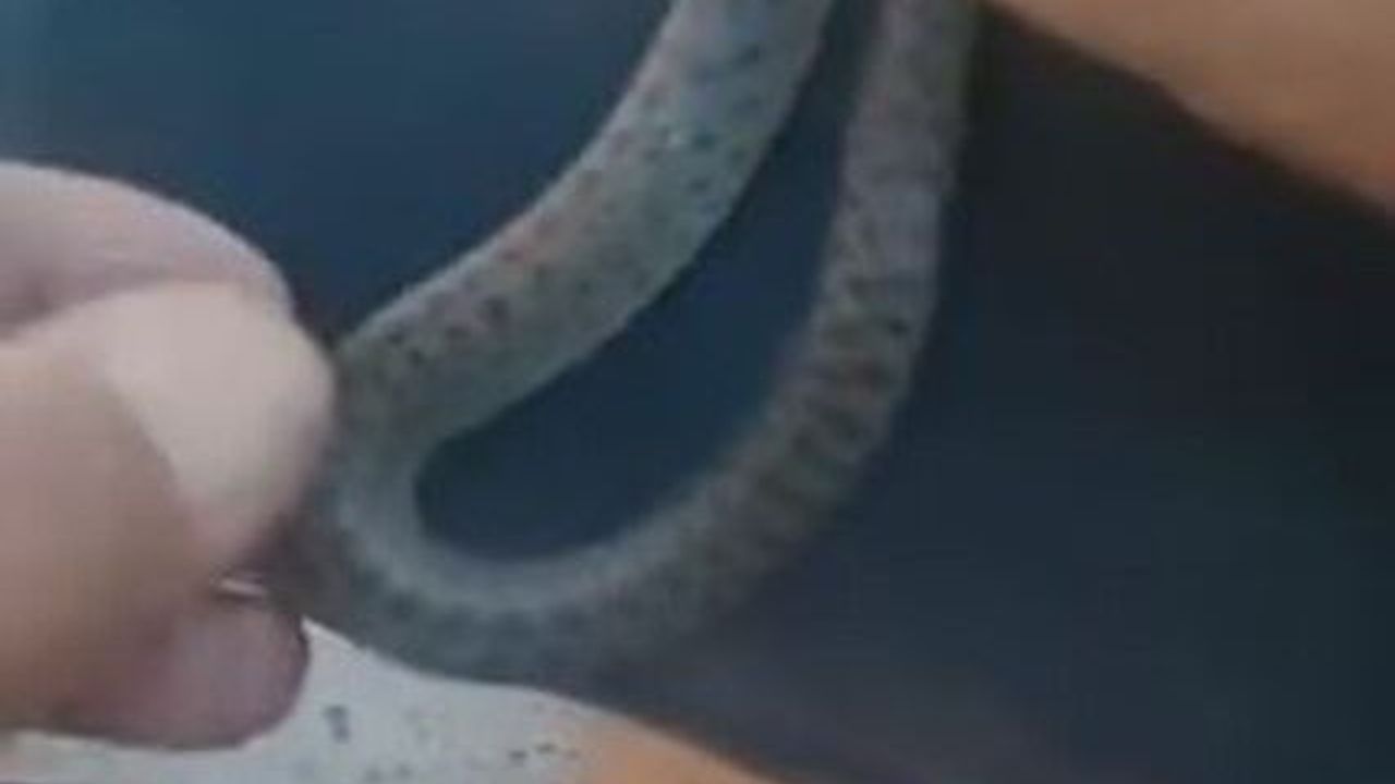 Elazığ’da bir kişi, yakaladığı yavru yılanı dizinin üstüne bırakıp torunlarına sevdirip o anları kayıt altına aldı.