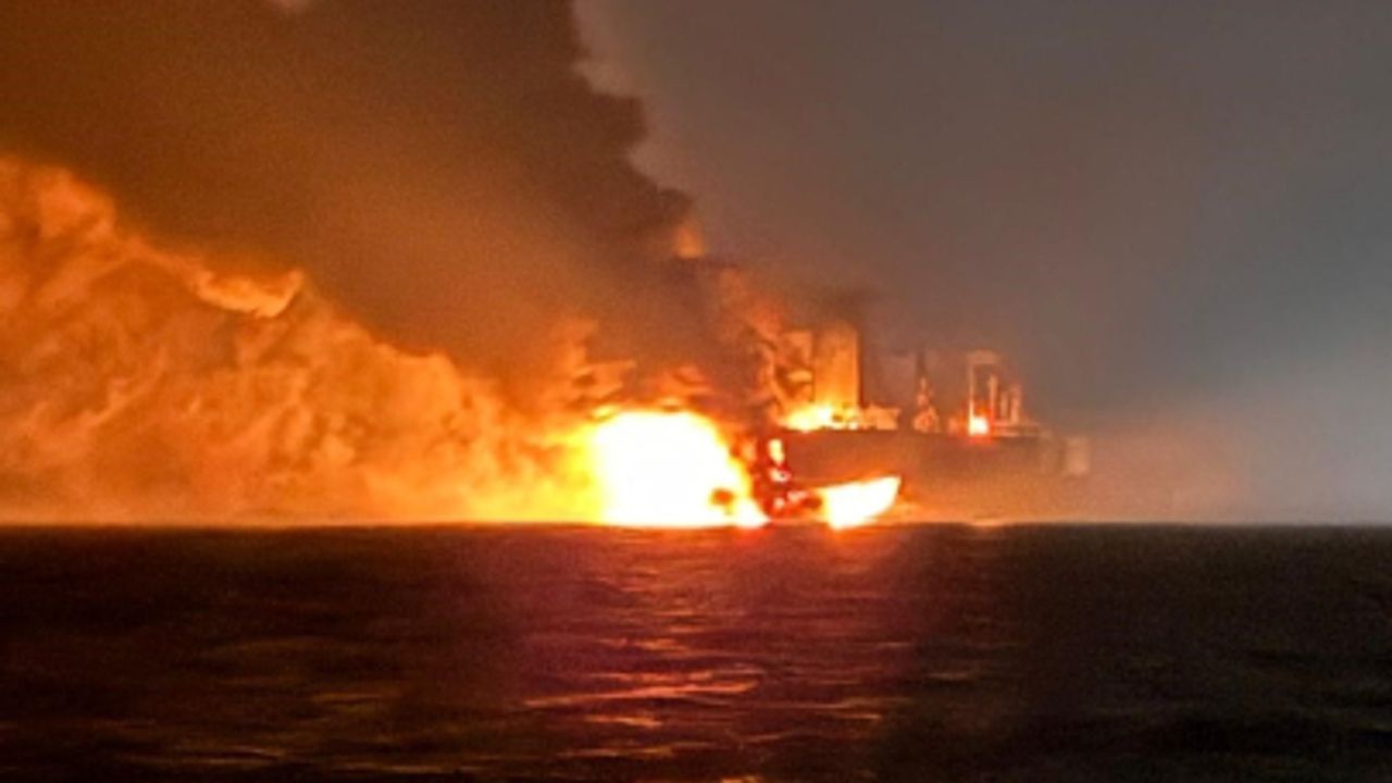 Öte yandan, yabancı menşeli gemide çıkan yangına ilişkin görüntülere ulaşıldı.