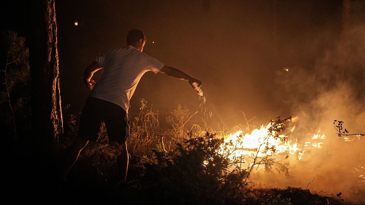 Havanın kararmasıyla birlikte alevler daha da belirgin hale gelirken, yangının oluşturduğu tehlike gözler önüne serildi.