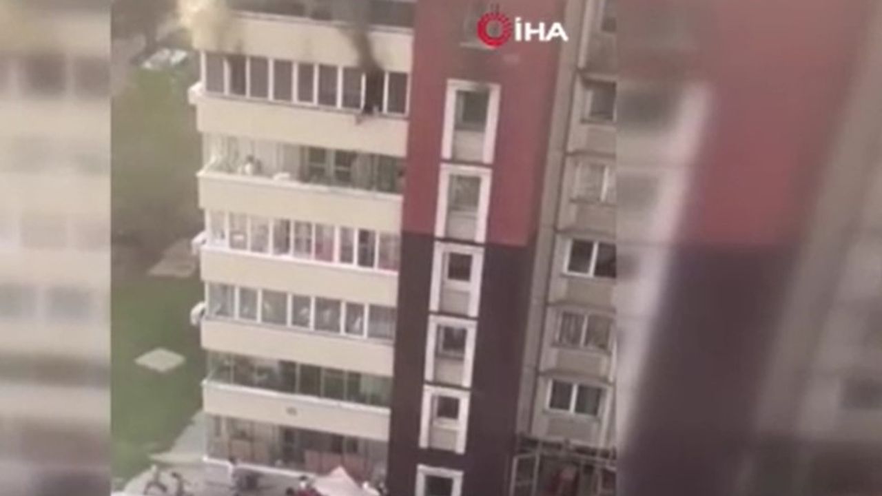 Çevredekiler tarafından kaydedilen görüntülerde, vatandaşların buldukları yatak ve gerdikleri brandalar ile dairelerinden atlayan kişileri yakalamaya çalıştıkları, bir kadının ise önce çocuğunu ardından kendini metrelerce yüksekten aşağı attığı görüldü.