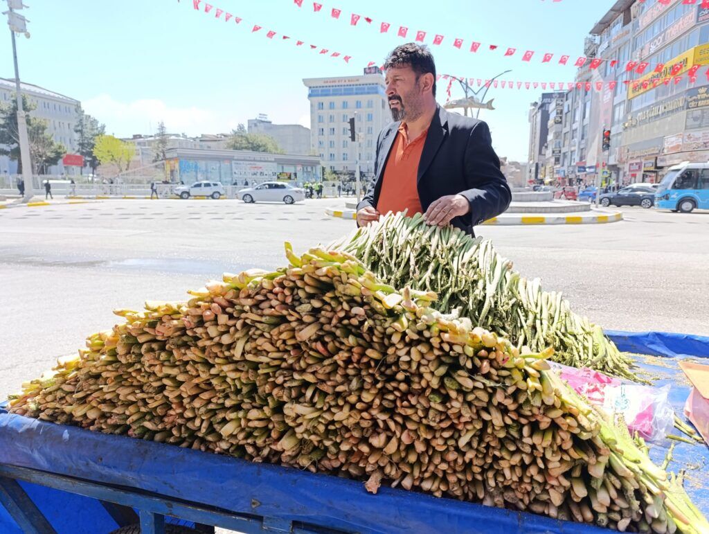 Van’da baharın gelmesiyle birlikte dağlarda doğal olarak yetişen ve ‘Yayla Muzu’ olarak bilinen uçkunun satışlarına başlandı.