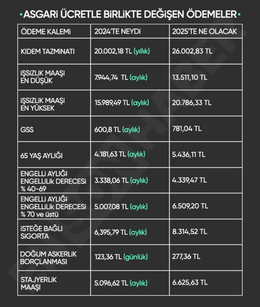 2025 yılı için belirlenecek asgari ücret doğrudan 7 milyonu ilgilendirse de yapılan zammın yansıyacağı ödemeler açısından pek çok kalemi kapsıyor.