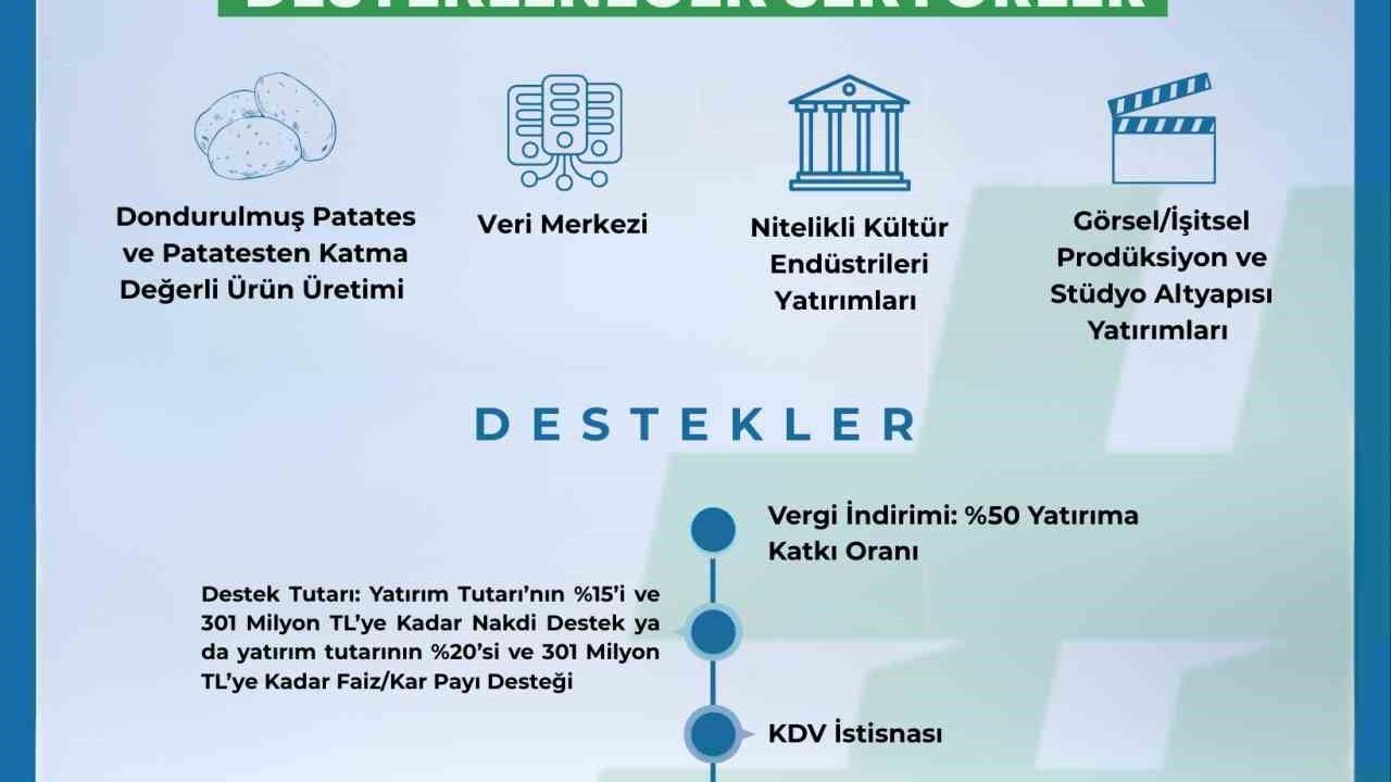Ayrıca yatırımcılara, yatırım tutarının yüzde 15’ine kadar nakdi destek veya yüzde 20’sine kadar faiz/kar payı desteği imkânı da sunuluyor.