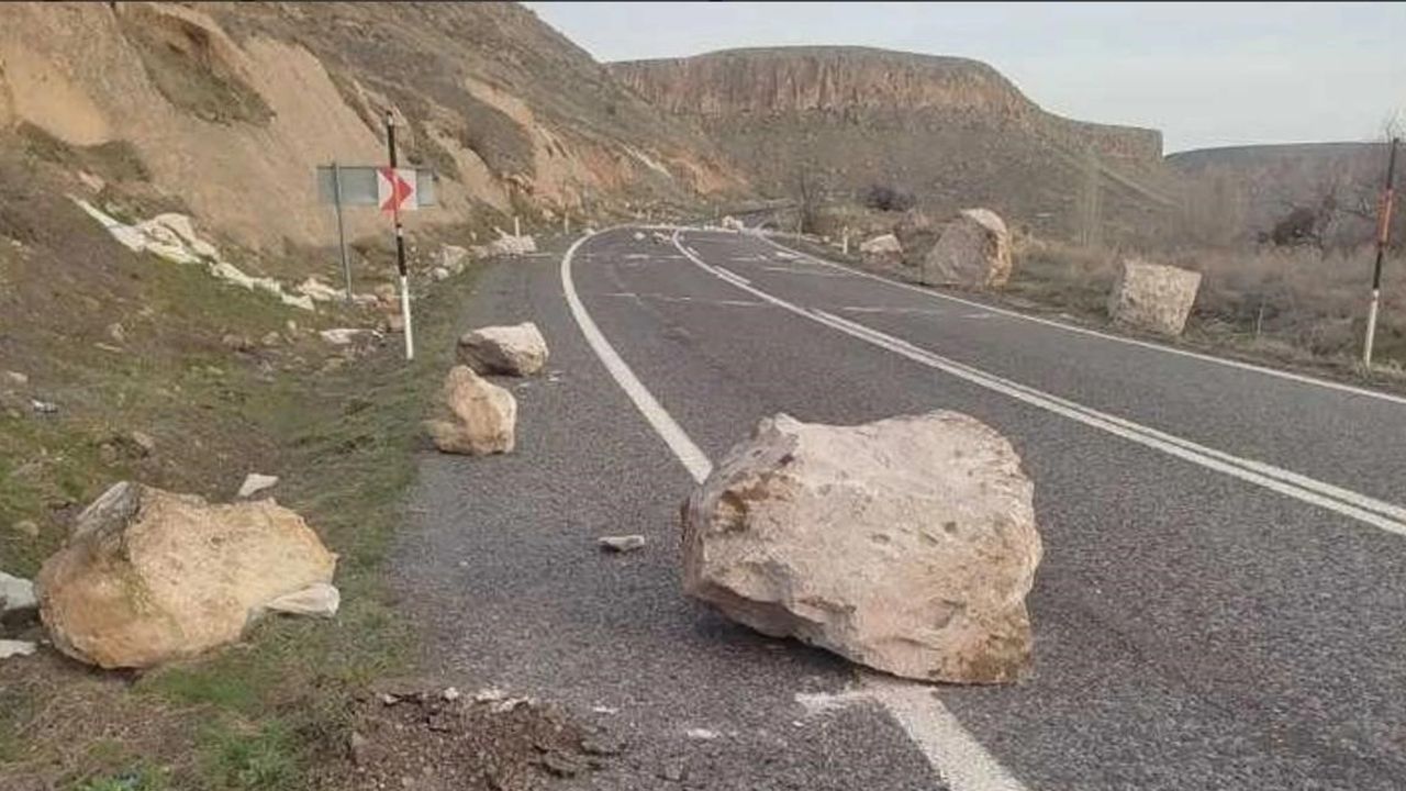 Nevşehir’de yamaçlardan kopan kaya parçalarının kara yoluna düşmesi endişe oluşturdu.