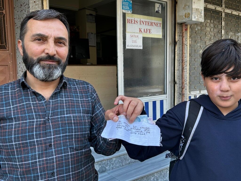 Daha sonra dükkanını açmaya gelen Nezih Ünsal ise içeride para olduğunu fark etti. Bunun üzerine güvenlik kamerası görüntülerini inceleyen Nezih Ünsal, 3 kızın parayı bulup, içeriye bıraktığını gördü. Notu da okuyan dükkan sahibi Nezih Ünsal, durumu çocuğun babası Abbas Kendir’e ileterek oğlunun parasını bulduğunu söyledi.