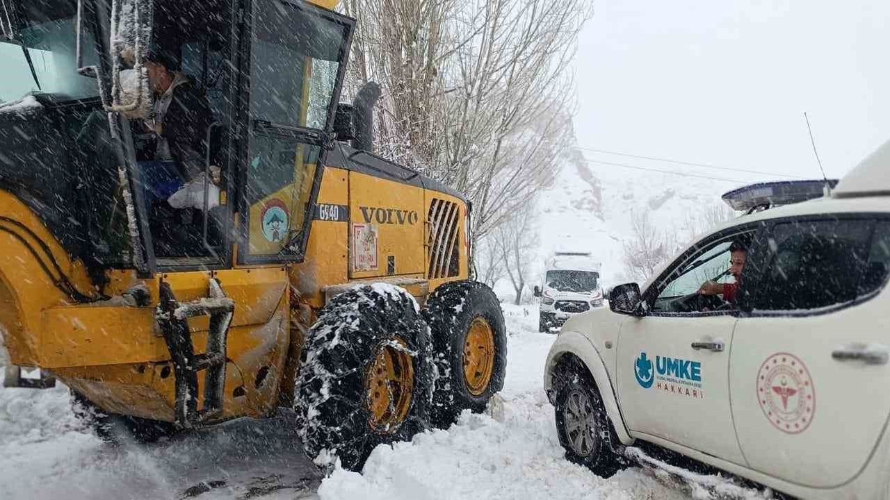 Hakkari İl Özel İdaresinin Yüksekova Şantiye Şefliğine bağlı ekipler, kar nedeniyle yolları kapanan 8 köydeki hastalar için seferber oldu. Köy yollarını açan ekipler 8 hastayı kurtararak hastaneye yetiştirdi.