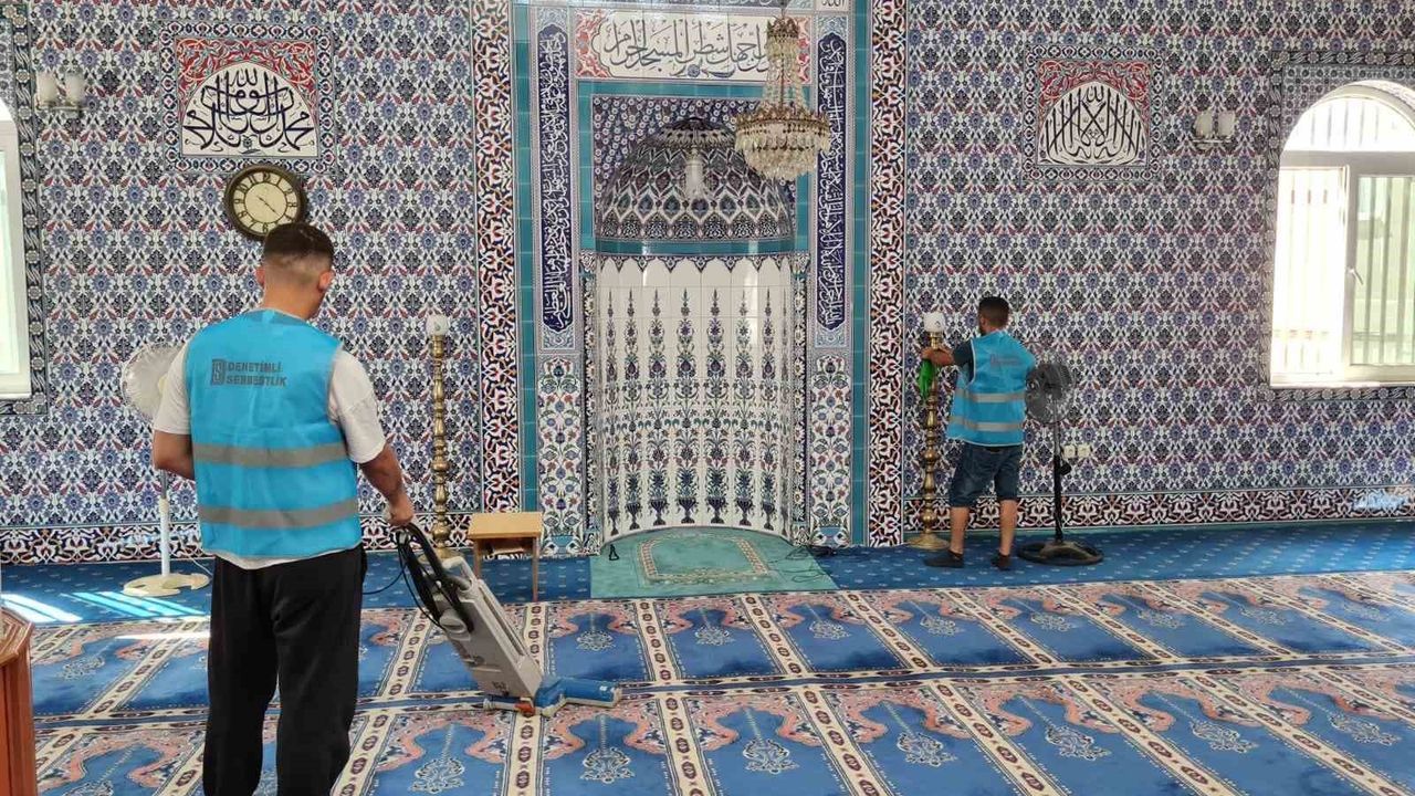 Manisa’da çeşitli suçlardan dolayı ceza alan ve denetimli serbestlik kapsamında cezalarını çeken yükümlüler Yunusemre ilçesinde camilerin temizlik ve bakım işlerine destek oluyor.