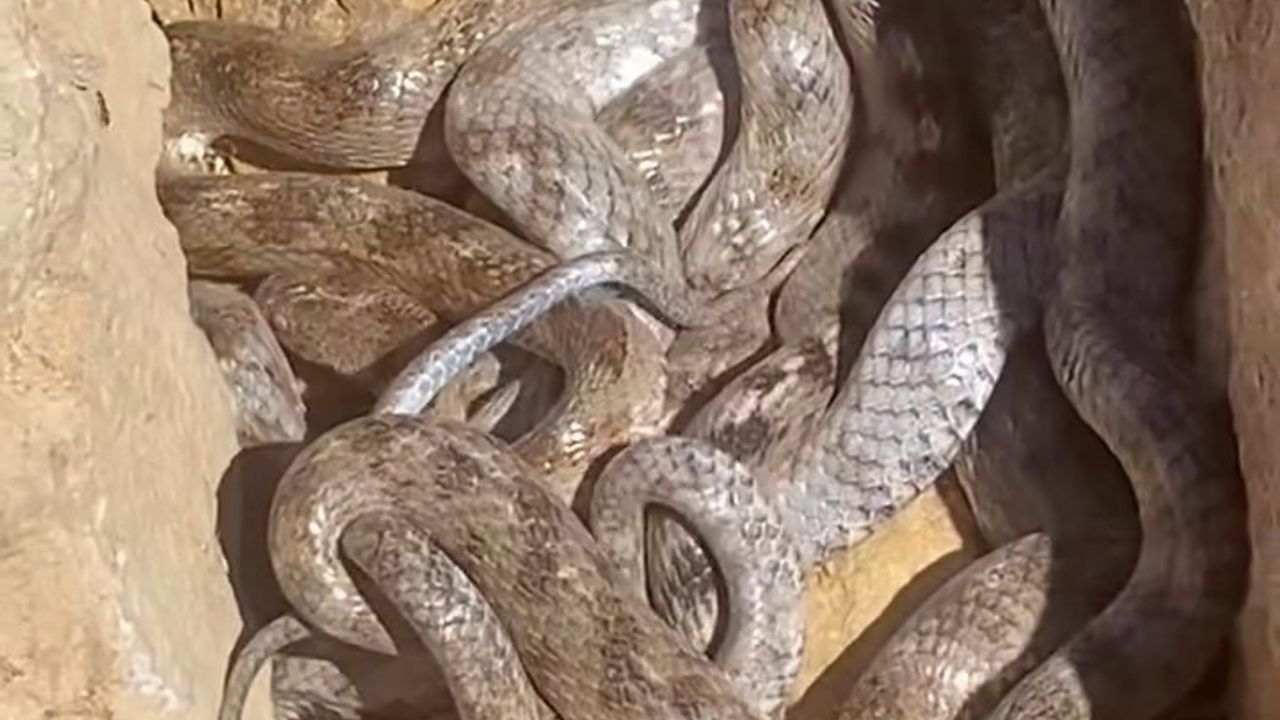 Ovacık ilçesine bağlı Büyükköy’de bir inşaatta çalışan Dilaver Eren, tahtaları toparlarken iç içe yumak halindeki yılanları fark etti. Gördüğü manzara karşısında şaşkına dönen Eren, yılanlara zarar vermeden uzaklaştı. O anlar cep telefonu kamerasına yansıdı.