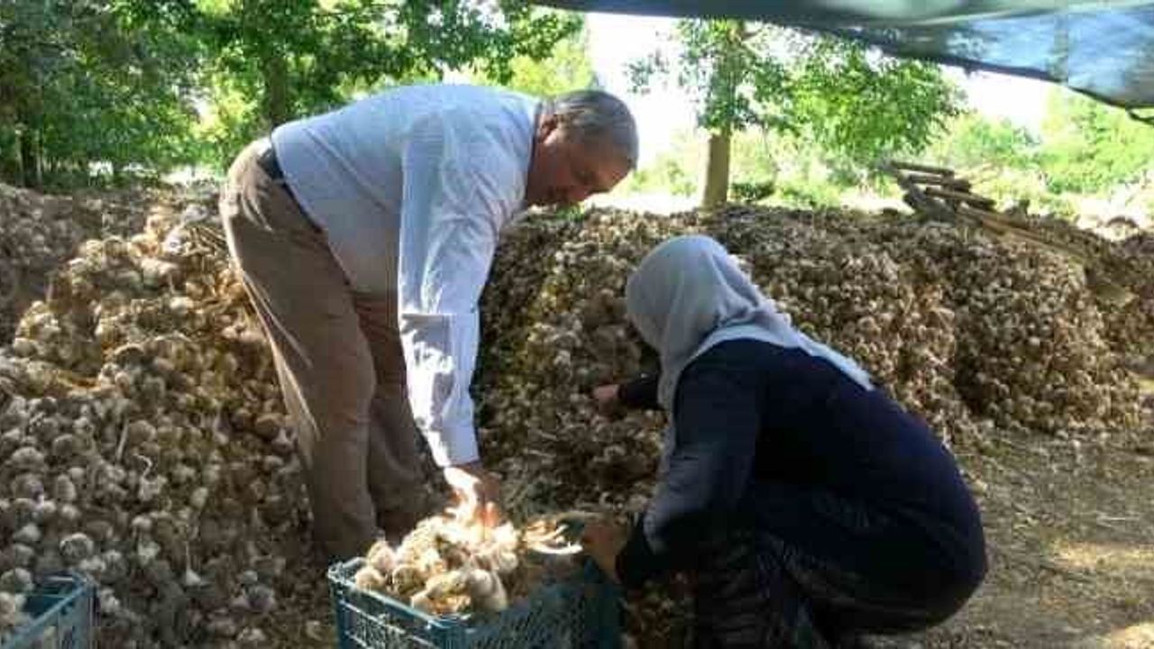 Rusya ve Almanya’ya antibiyotik fabrikalarında kullanılmak üzere 6 yıldır organik sarımsak ihraç eden üretici Aydın Öngün (65), “Bu sene sulama sıkıntısından ve hava şartlarından dolayı bin dekardan aldığımız 1-2 ton sarımsak 300-400 kiloya kadar düştü. Hava şartları var, su yok. Geçen yıl 300 ton civarında sarımsak üretmiştik. Bu yıl 80-90 tona kadar düştü. Yani diyebilirim ki yüzde 400-500 üretim düştü. Bu iklim değişikliğinden dolayı suya çok ihtiyacımız var" dedi.