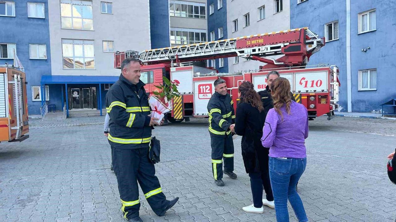 Kars’ta kalan kız öğrenciler, ‘içeride mahsur kalan öğrencimiz’ var diyerek ihbarda bulundukları itfaiye ekiplerine sürpriz yaparak İtfaiye Haftasını kutladılar.