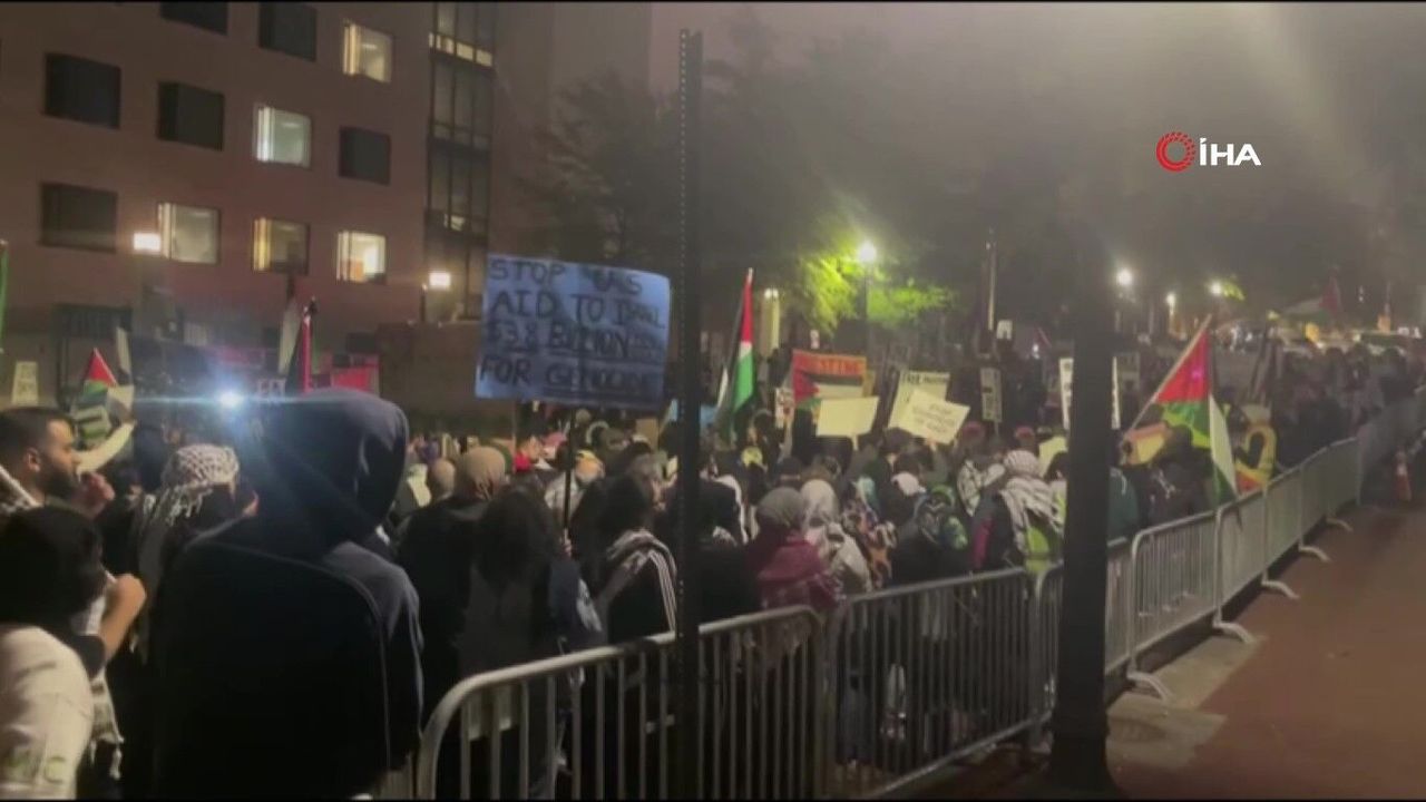 İsrail ve Hamas arasındaki çatışmalar 7 Ekim’den bu yana devam ederken, dün İsrail’in ABD Kongresi'nde ateşkes için düzenlenen oturma eyleminin ardından 500’den fazla Filistinli de İsrail’in Washington Büyükelçiliği önünde İsrail ve Hamas’ın ateşkesi sağlaması için eylem yaptı.