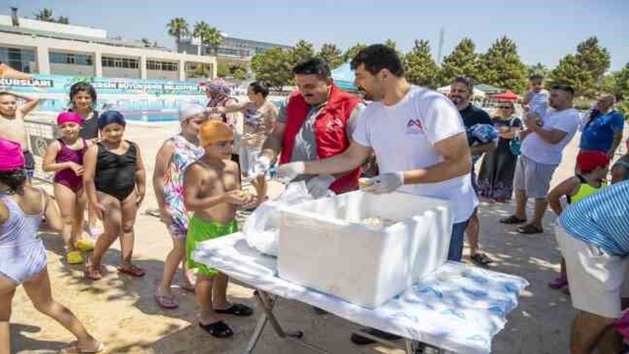 Mersin Büyükşehir Belediyesinin ‘Vahap Amca’yla Tatlı Günler’ projesi çerçevesinde, Macit Özcan Spor Tesislerinde yüzme kursu alan öğrencilere limonlu dondurma dağıtıldı. Yüzme kursu öğrencileri, Tarsus’un meşhur limon dondurmasıyla serinlemenin keyfini çıkardı.