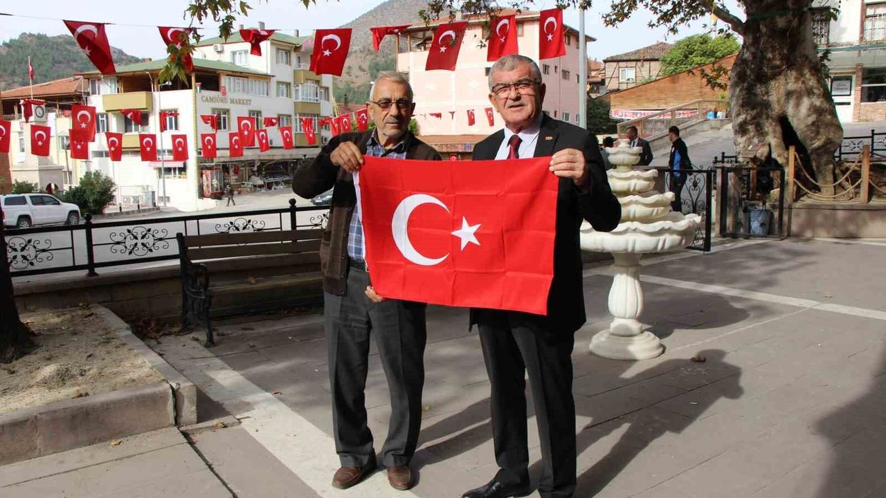 Bayrağı öperek alan vatandaşlardan Mehmet Tokul da, “Bundan daha anlamlı bir hediye olamaz. Gururumuz olan Türk bayrağı ilelebet dalgalanacak” ifadelerini kullandı.